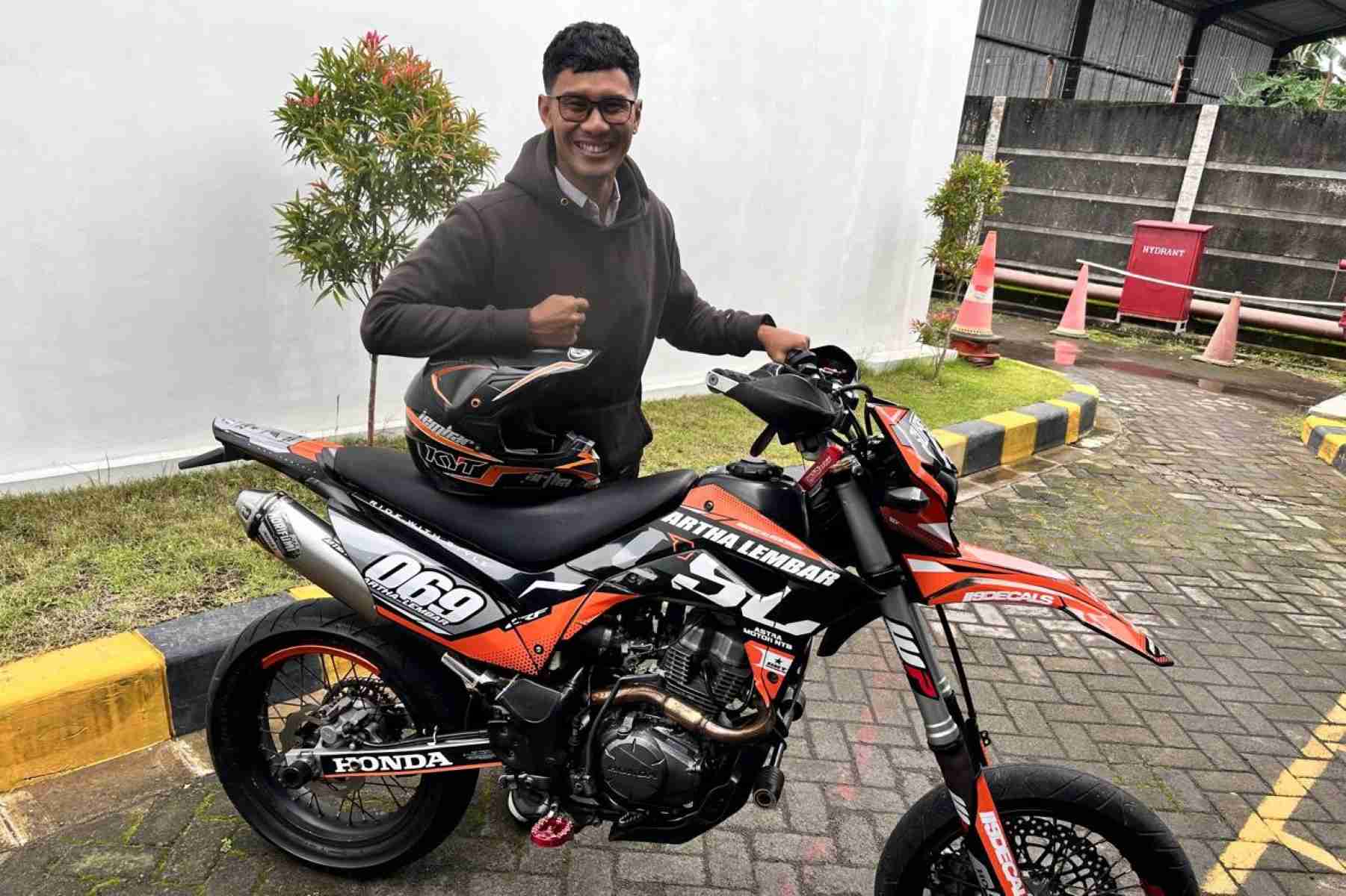 “Penyematan grafis baru membuat aura motocross New CRF 150L terasa semakin kuat, baik saat digunakan melintasi jalanan aspal perkotaan maupun ketika diajak menaklukkan lintasan off-road. Motor Saya sudah melalang buana ke berbagai kota, juga di modif sesuai selera pribadi saya tentunya tanpa meninggalkan fungsi Safetynya,” jelas Artha.