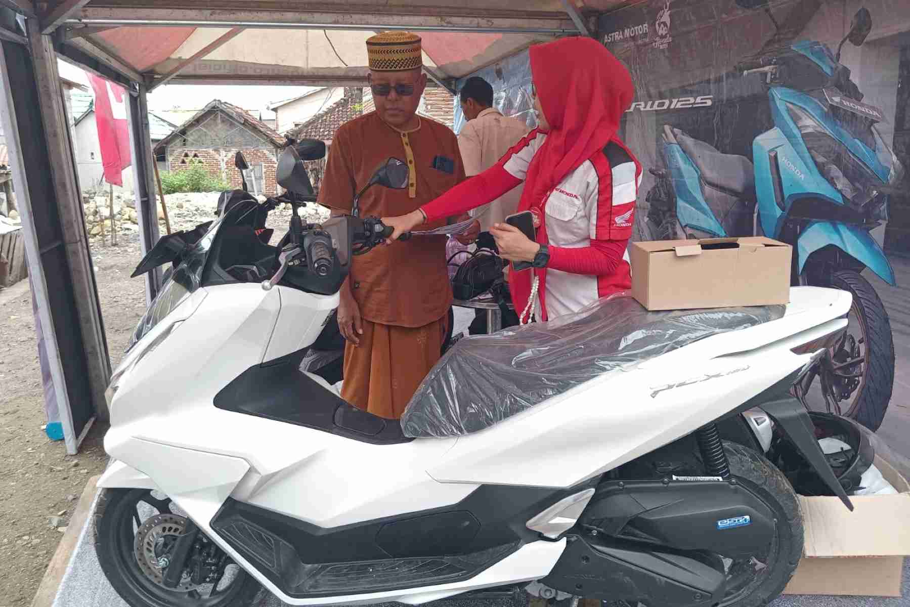 Lombok Timur, ntbone.com – Sebagai bentuk komitmen dalam mendekatkan diri kepada masyarakat serta memberikan kemudahan akses informasi dan pembelian sepeda motor Honda, Astra Motor menggelar Pameran Sepeda Motor Honda di Kecamatan Pringgabaya, Kabupaten Lombok Timur, Nusa Tenggara Barat.