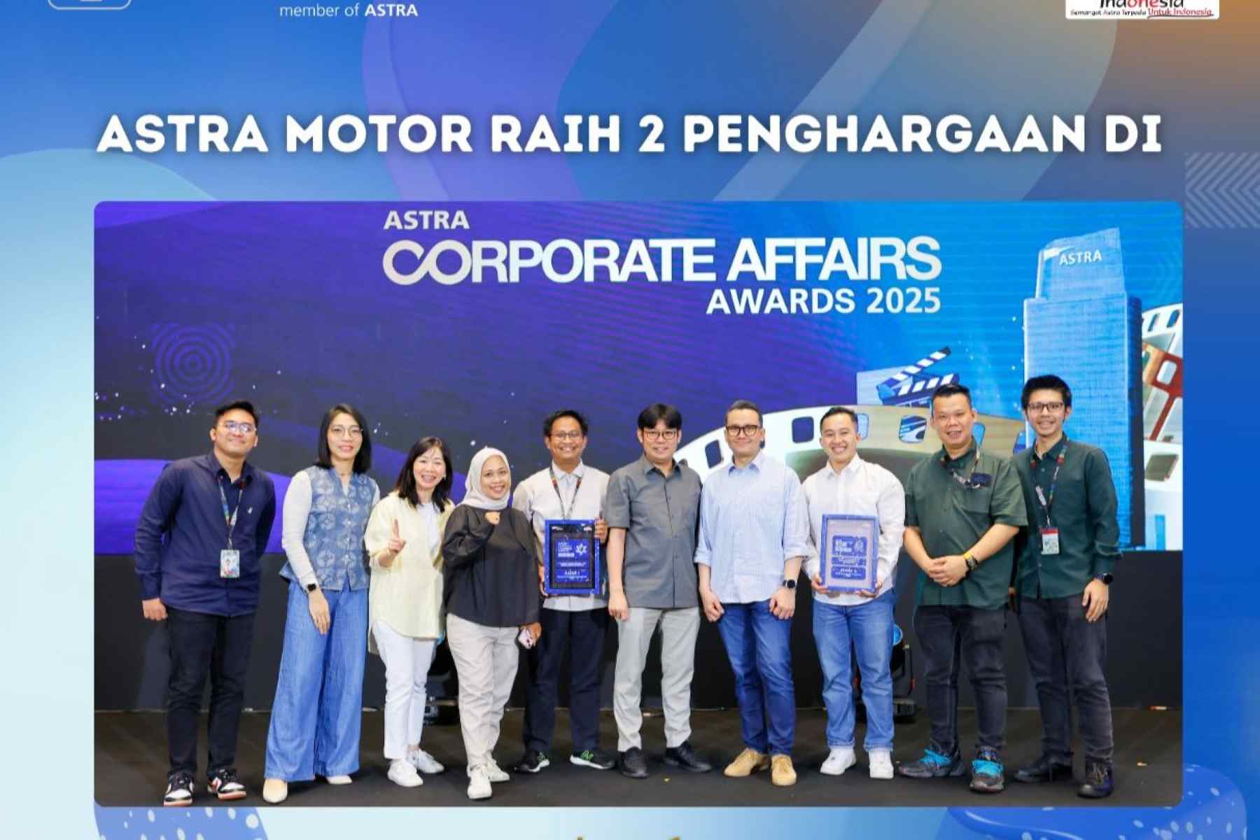 Dalam ajang Astra Corporate Affairs Awards 2025 tersebut, Astra Motor melalui program Astra Friendly Company berhasil meraih Juara 1 pada kategori Entrepreneurship & Economic Growth. Penghargaan ini diberikan atas kontribusi nyata Astra Motor dalam mendorong pertumbuhan kewirausahaan dan penguatan ekonomi masyarakat melalui pendekatan kolaboratif dan berkelanjutan.